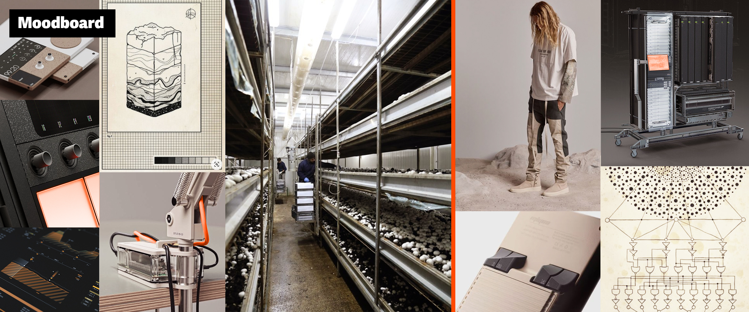 The combination of industrial technology, natural brown tones, process infographics and a nod to the era of Egyptian wall paintings creates a unique brand.