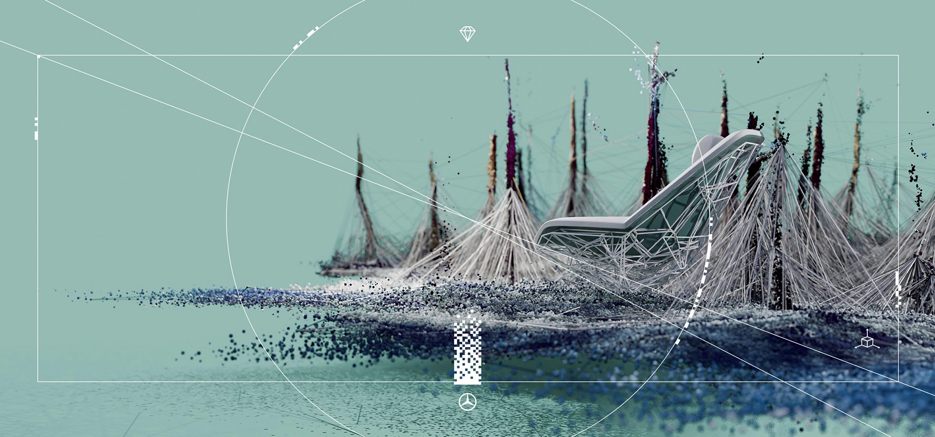 Mercedes aims to always be one step ahead. This should also apply to the area of virtual mobility. Mercedes must take up the unoccupied space in order to give it meaning and identity. What will the movement of the future look like? We will move between the analog and digital worlds. The car of the future is the catalyst that catapults us into virtual worlds. These journeys - whether analog or digital - begin in the interior of the car.